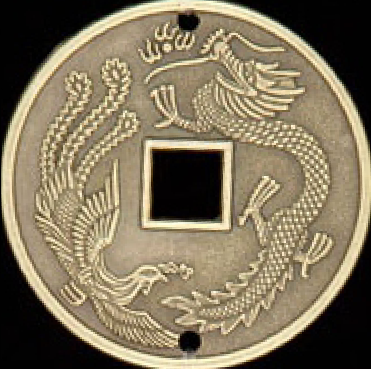 FEATURING A REPLICA Feng Shui CHINESE COIN The Dragon (right) and long tailed Phoenix Bird (left) were powerful symbols of harmony, with the dragon as the most powerful source of energy or "Chi".