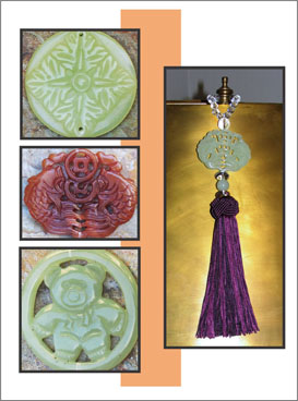 As my hallmark line of TRULYHUMANmedallions offers so many styles, colors and price options, I decided to show you product in two ways by complementing the online store presentation with Magazines (Flipbooks) that show images taken using natural light on slate stones to place the gemstones in their context. Use these Magazines to familiarize yourself with all the options, then click through to the store whenever you are ready. I am also using Magazines to show Design Ideas for your home decor as well as to introduce background information, such as Japanese Obi patterns. I sincerely hope that these tools will heighten your shopping experience. --Barbara