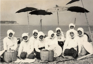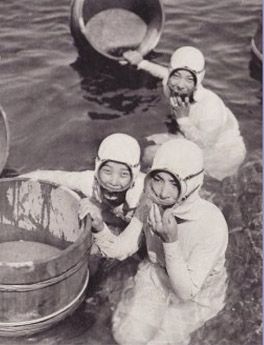 After Mikimoto launched his cultured pearl farms on Mikimoto Island near the city of Toba, he maintained the Ama diving tradition. As the island attracted many visitors, Mikimoto clothed the divers in white garbs lest their previous unabashed nudity would scare tourists away.